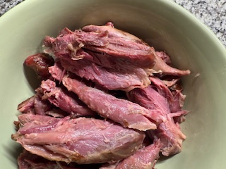 And so easy to cook! Place hock(s) in a crockpot, add water to almost cover them, add a lid and cook on low overnight. Remove from the liquid and let cool until it's easy to handle. The hocks will practically fall apart and you can remove and discard the bones and any fat that isn't rendered. Leave the meat in chunks, or you can pretty much shred it with your hands, it's that soft. Use the meat as your entree, or add to soups, stews, casseroles, salads, scrambled eggs...there are lots of possibilities. In my humble opinion, the tenderness of this meat rivals a fillet mignon any day!